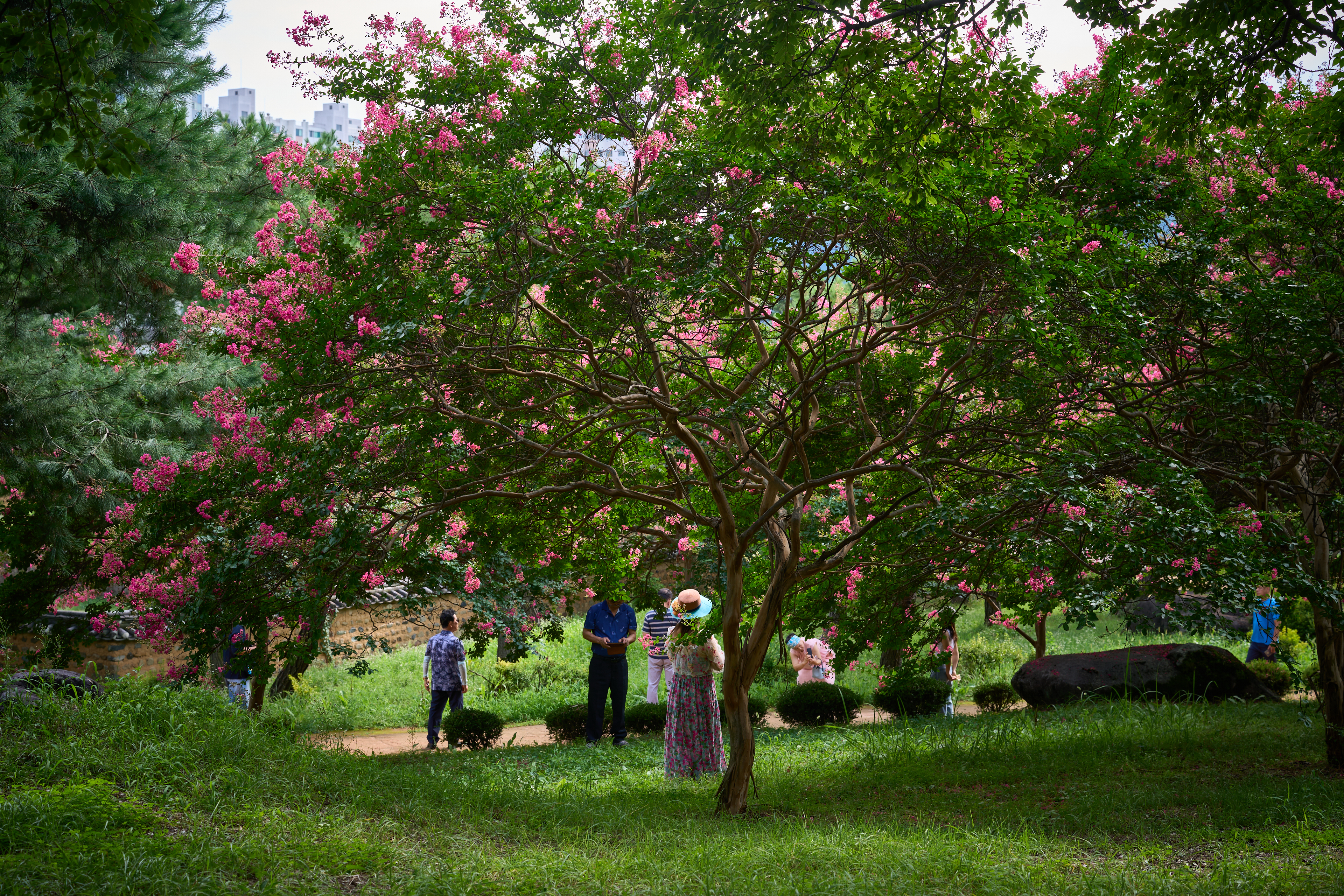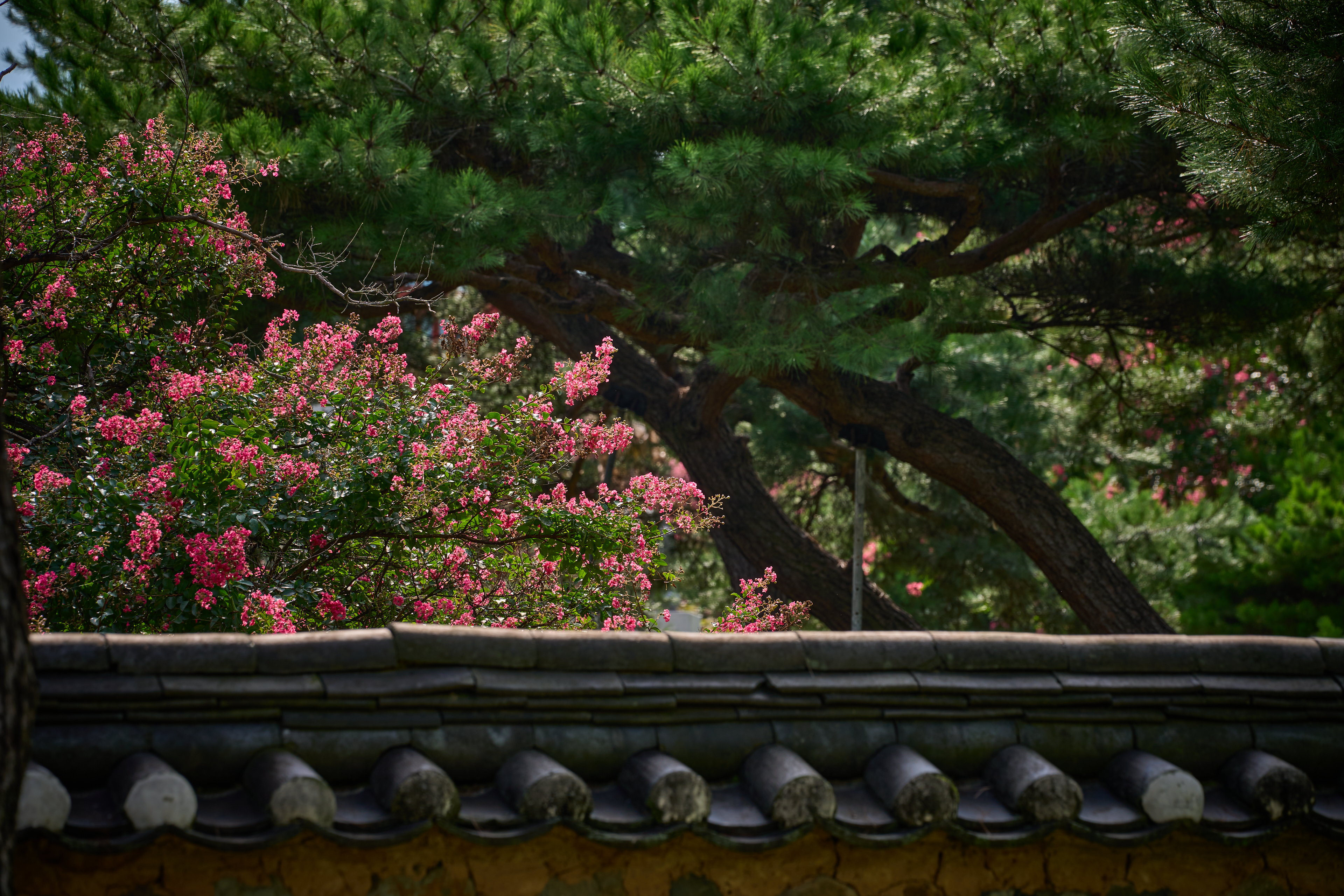 고즈넉한 한옥과 배롱나무가 만들어낸 특별한 장면.