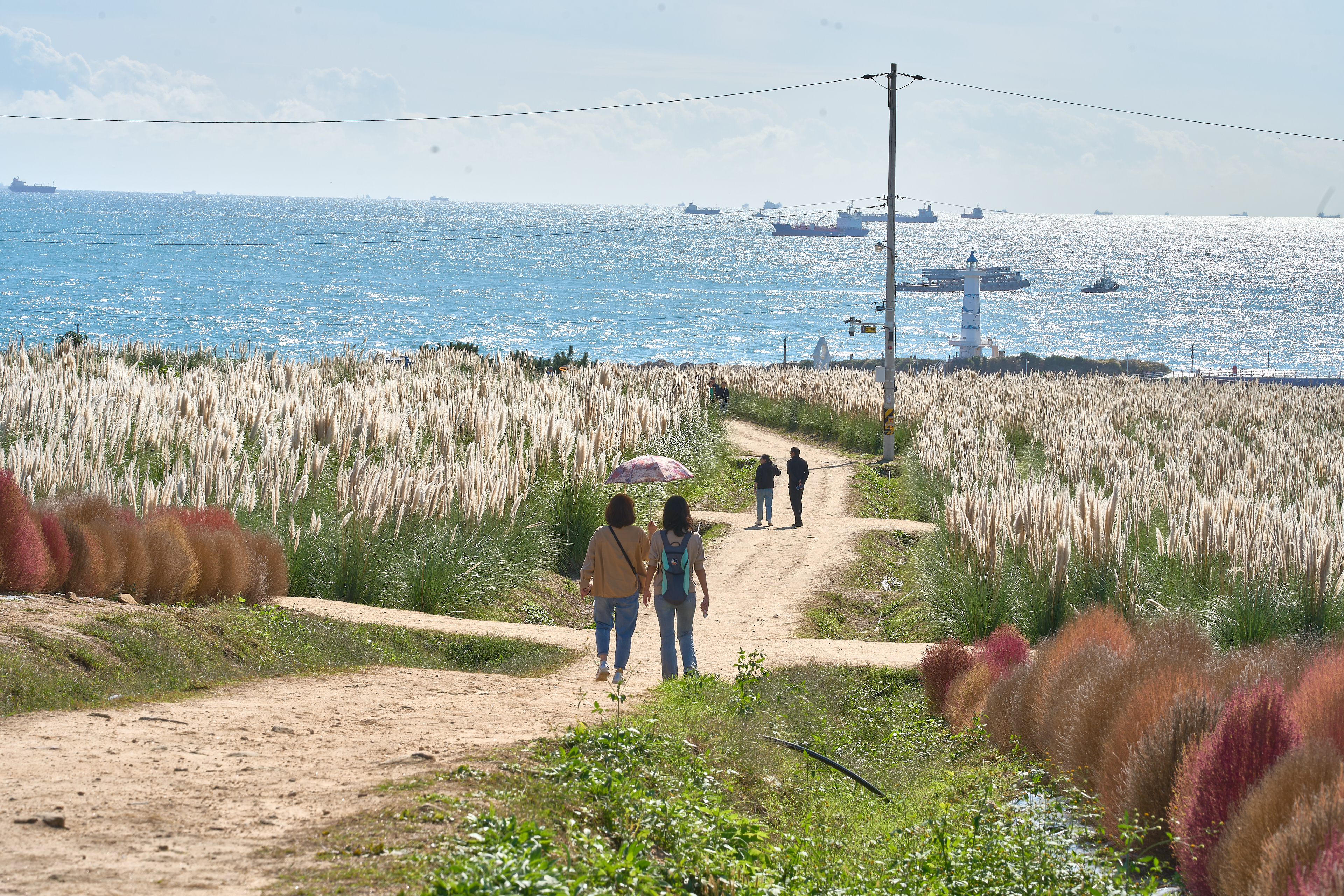 초입부터 바닷바람에 흔들리는 팜파스와 댑싸리가 시선을 사로잡죠.