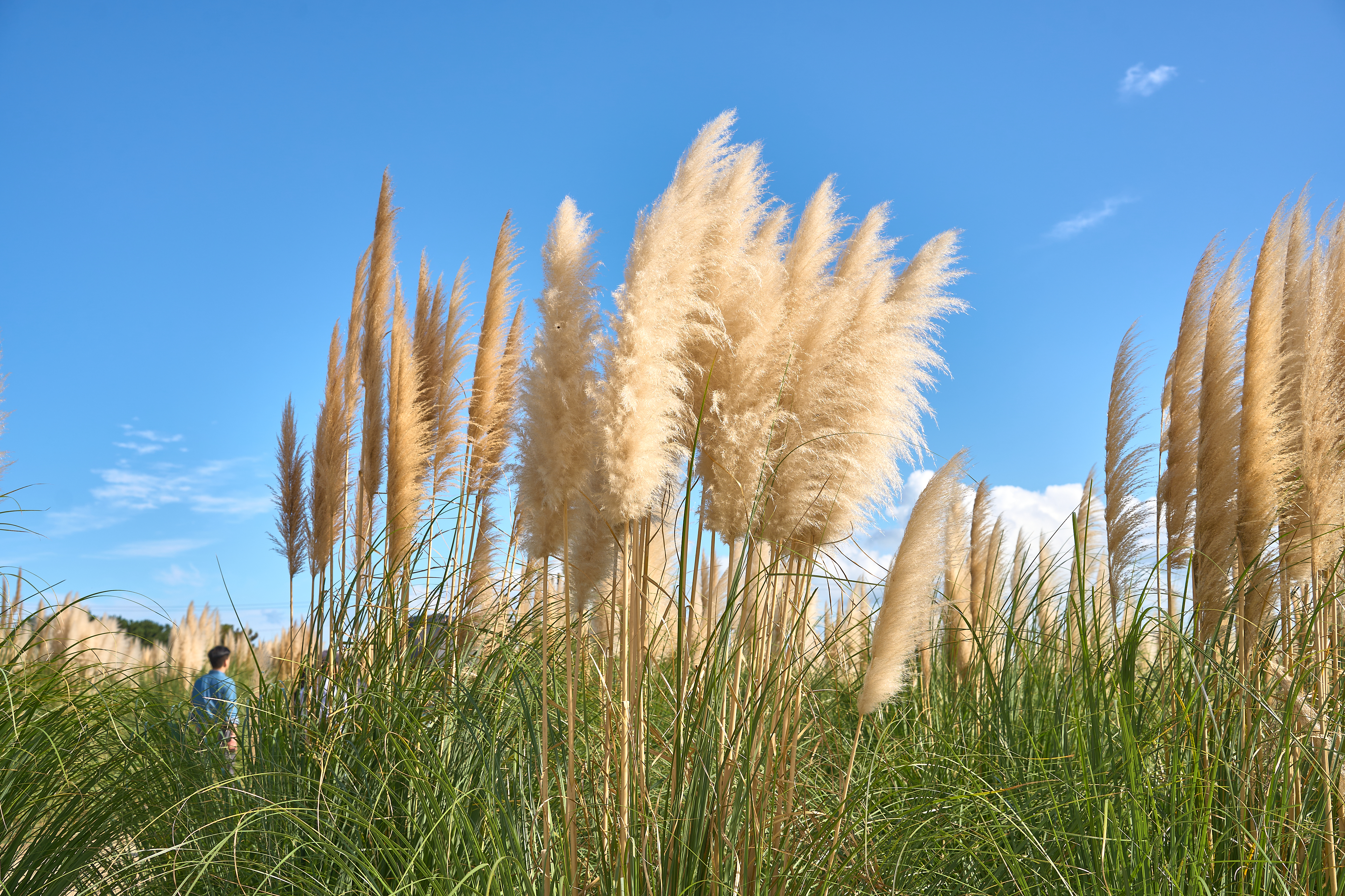 팜파스는 바닷가 바로 옆에서 키 높이로 자라 바람에 흔들릴 때 그 장관이 더욱 인상적이에요.